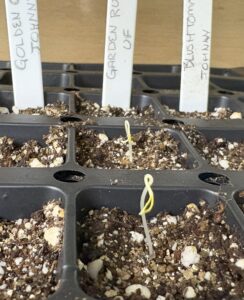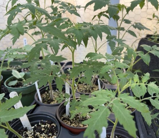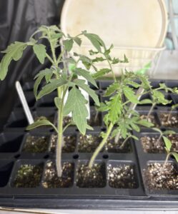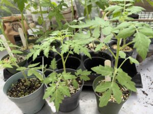 Lots of different tomato seedlings will be started in flats over the next few months. Our first wave has already been potted up into four-inch pots which will be ready to plant in the garden soon.